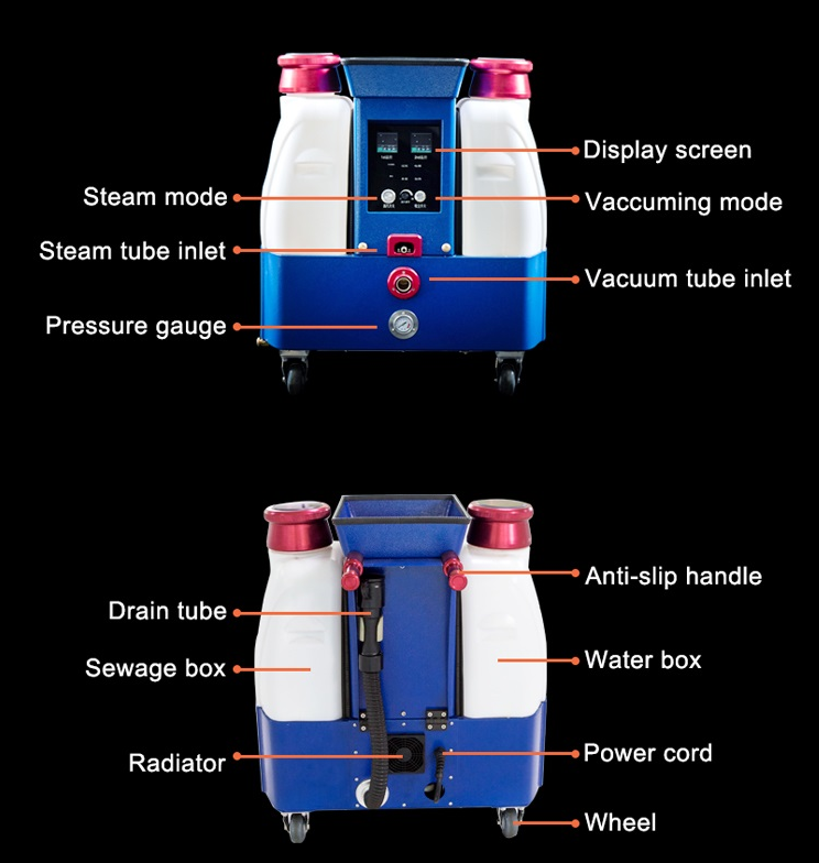 limpiador de alta presión del PDA de 10 barras del jet del vacío del piso de la alfombra del vapor portátil móvil comercial del coche